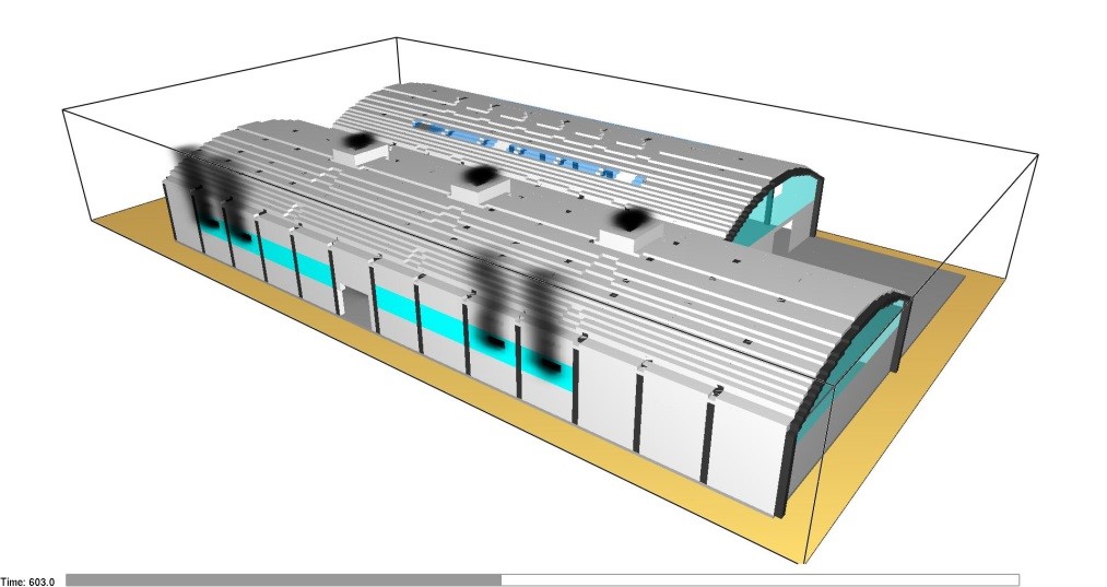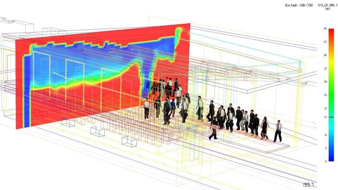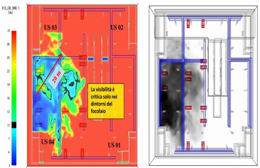 E’ possibile anche valutare le portate di fumi emesse, il loro movimento e la visibilità delle vie di fuga e della cartellonistica.