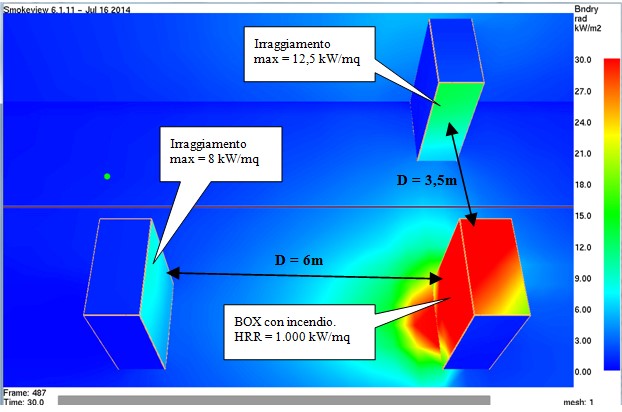 E’ possibile valutare le condizioni di irraggiamento prodotte dall’incendio su ogni punto del locale.