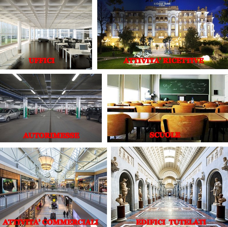 - Futura V.9: Edifici sottoposti a tutela e destinati a contenere musei, gallerie, esposizioni, mostre, biblioteche e archivi.
