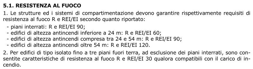 Figura 2. Esempio di regole prescrittive sulla Resistenza al fuoco