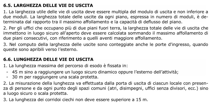 Figura 3. Esempio di regole prescrittive sul Sistema di esodo