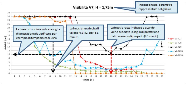 E’ possibile valutare le condizioni di vivibilità nell’edificio (tenability) in termini di visibilità, temperatura, FED, irraggiamento.