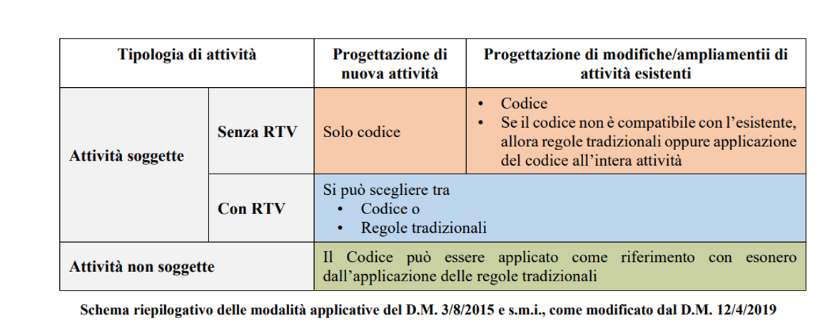 Il DM 12 aprile 2019 amplia il campo di applicazione del codice rispetto alla stesura originale introducendo le attività dalla n. 19 alla n. 26 e la n. 73 che, invece, erano escluse dall’originario campo di applicazione del D.M. 3 agosto 2015.