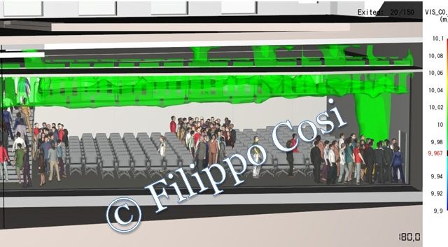 Figura 3. Esempio di analisi comparata dell’esodo e dell’incendio con software CFD (progetto di F. Cosi)