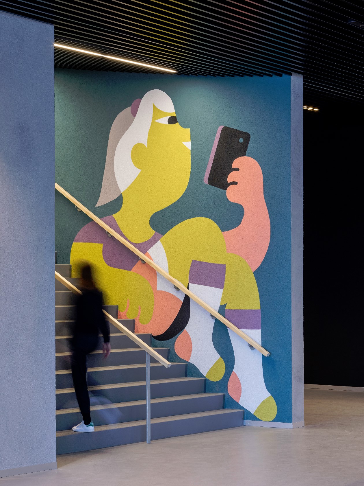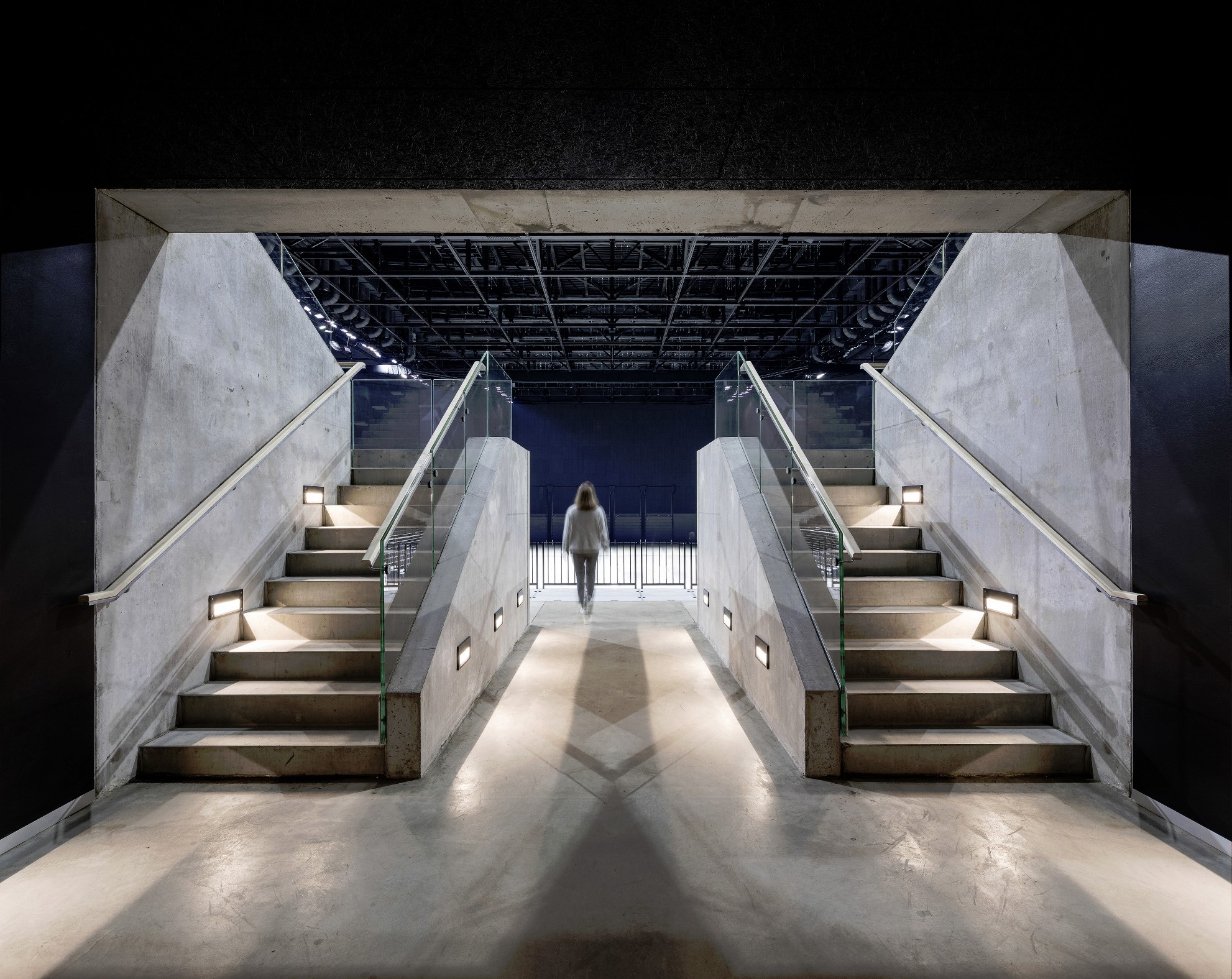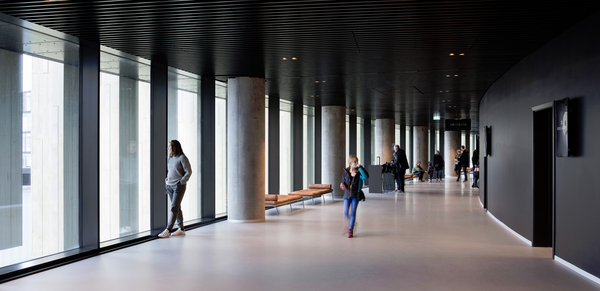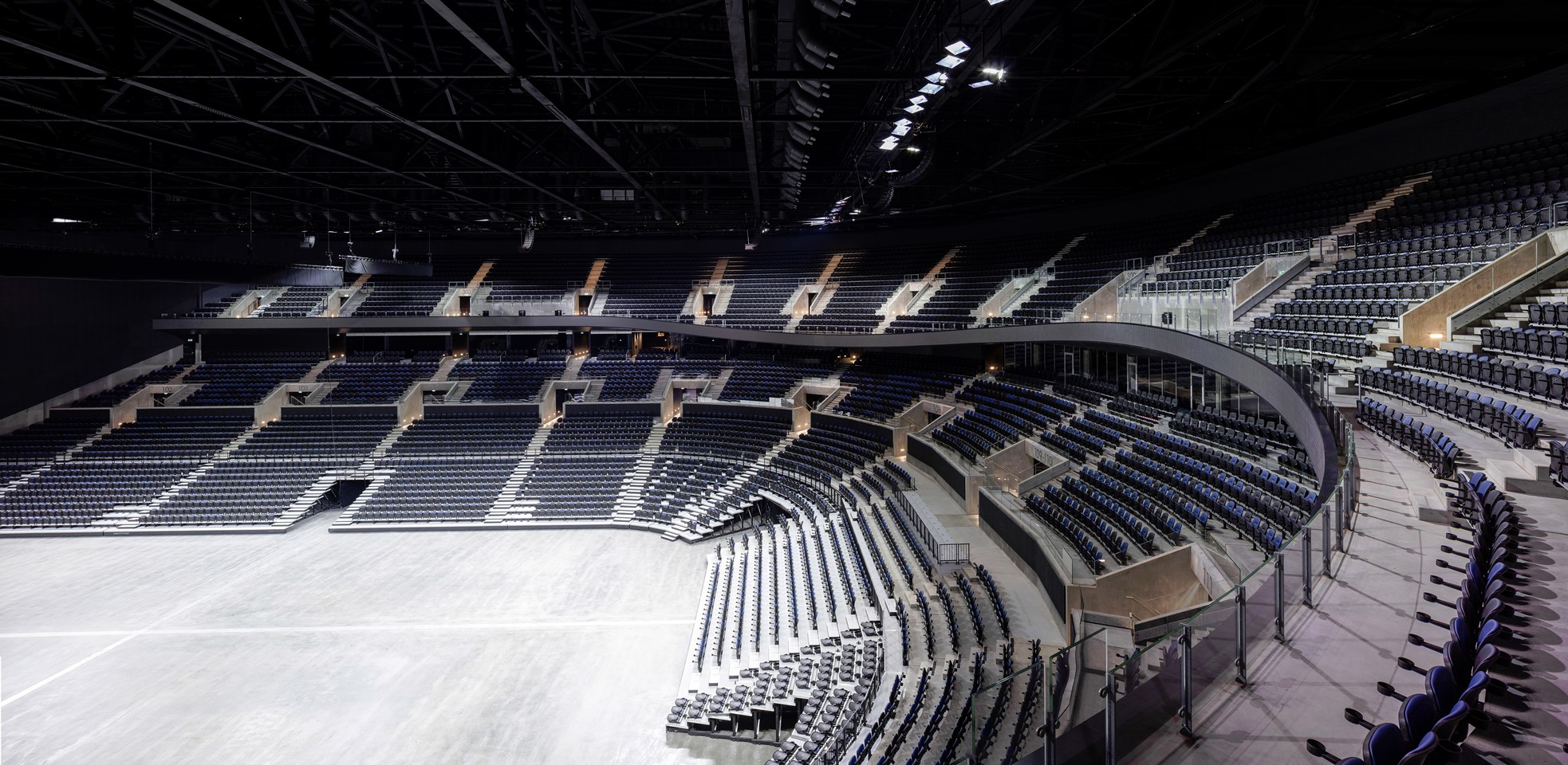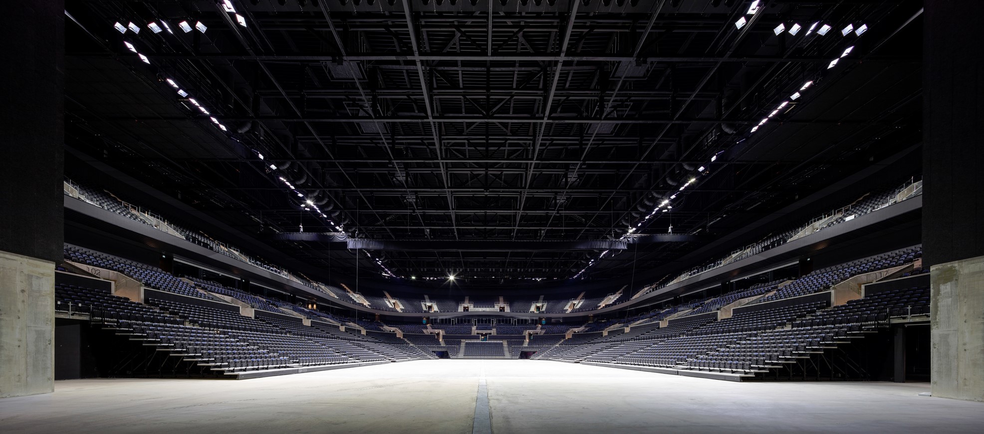 Anche il design degli interni è basato su una forte tradizione scandinava, dove l’enfasi è sulla qualità, sulla funzionalità e sulla semplicità. Tutto ruota attorno alla sala, uno spazio estremamente flessibile progettato per ospitare grandi concerti (come quello dei Metallica con quattro date sold out) o grandi eventi sportivi, dal basket all’hockey, dal tennis al nuoto. La platea a U, studiata con un allestimento scenico di prim’ordine, consente una gamma infinita di layout: se la maggior parte dei posti a sedere è disposta su tre lati del palco, è anche possibile ospitare ulteriori spettatori sul quarto o disporre il palco al centro, dato che il pavimento può essere ritratto. Un atrio distributivo su ogni livello, pensato in modo da consentire una visuale continua sul quartiere e sulla città, circonda la sala e funge da principale circolazione fornendo accesso a bar, ristoranti e tribune. I colori predominanti degli interni sono il grigio e il nero, alternati a dettagli lignei e aree in cui domina il colore per facilitare l’orientamento, come la scala interna principale.