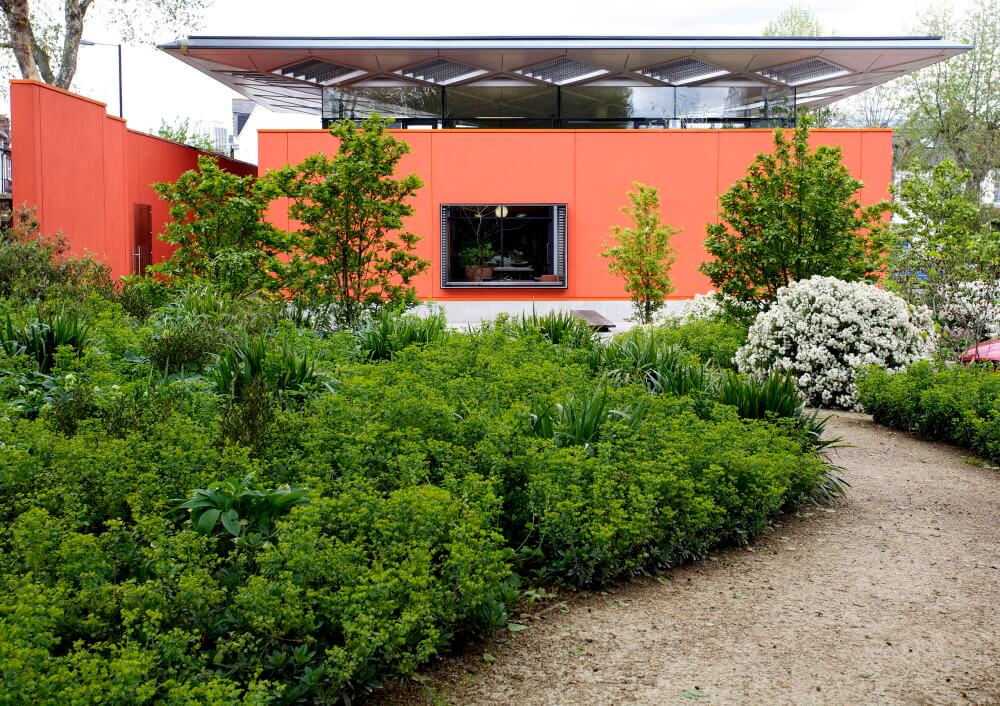 Maggie’s Center West London, bassa struttura dal rosso acceso sorta per alleviare le sofferenze dei malati oncologici e delle loro famiglie nei pressi del Charing Cross Hospital ad Hammersmith.
