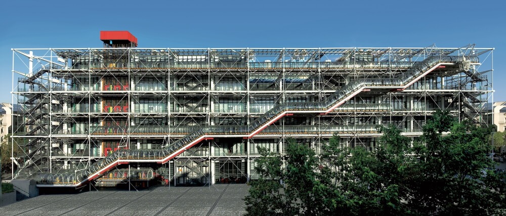 Centre Georges Pompidou di Parigi. Vincitori di concorso, realizzano, con la collaborazione di Ted Happold e Peter Rice, un