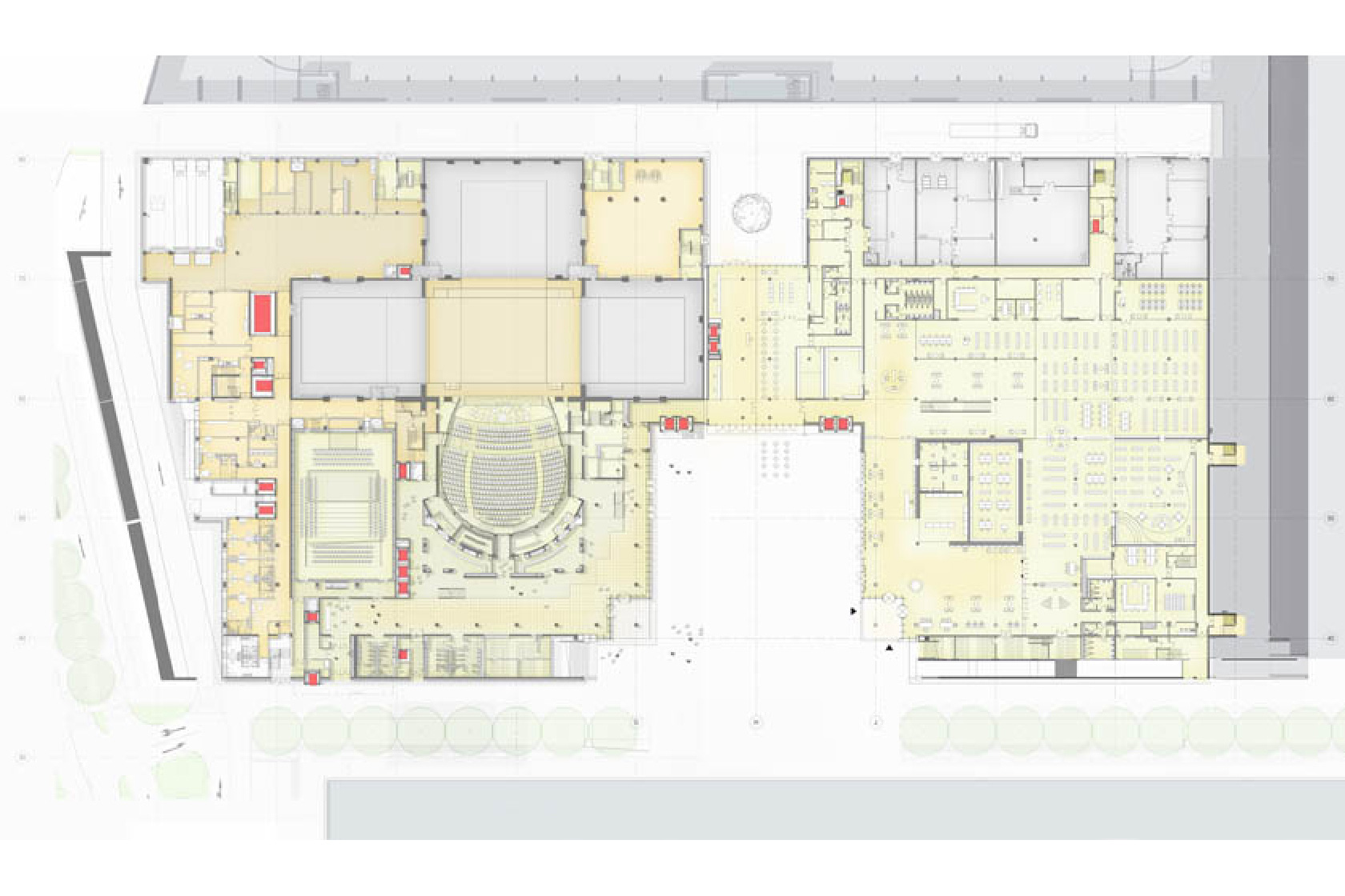 L’incarico viene conferito allo studio di Renzo Piano al termine di una procedura ristretta di selezione a inviti, con Rpbw che nel 2008 inizia a lavorare a un complesso polifunzionale da realizzarsi su un’area di 23 ettari in cui i volumi costruiti, che, parzialmente ipogei, sembrano emergere da un’increspatura della crosta terrestre, e un parco di 170.000 mq dialogano in stretto contatto. Elemento unificatore è la creazione di una monumentale collina verde artificiale la cui pendenza, in aumento in direzione del mare, culmina nel centro focale del progetto, la terrazza belvedere panoramica che si affaccia sulla costa per ricreare il contatto con l’acqua andato perduto in seguito allo sviluppo dell’area, che ha compreso anche la costruzione della vicina sopraelevata autostradale.