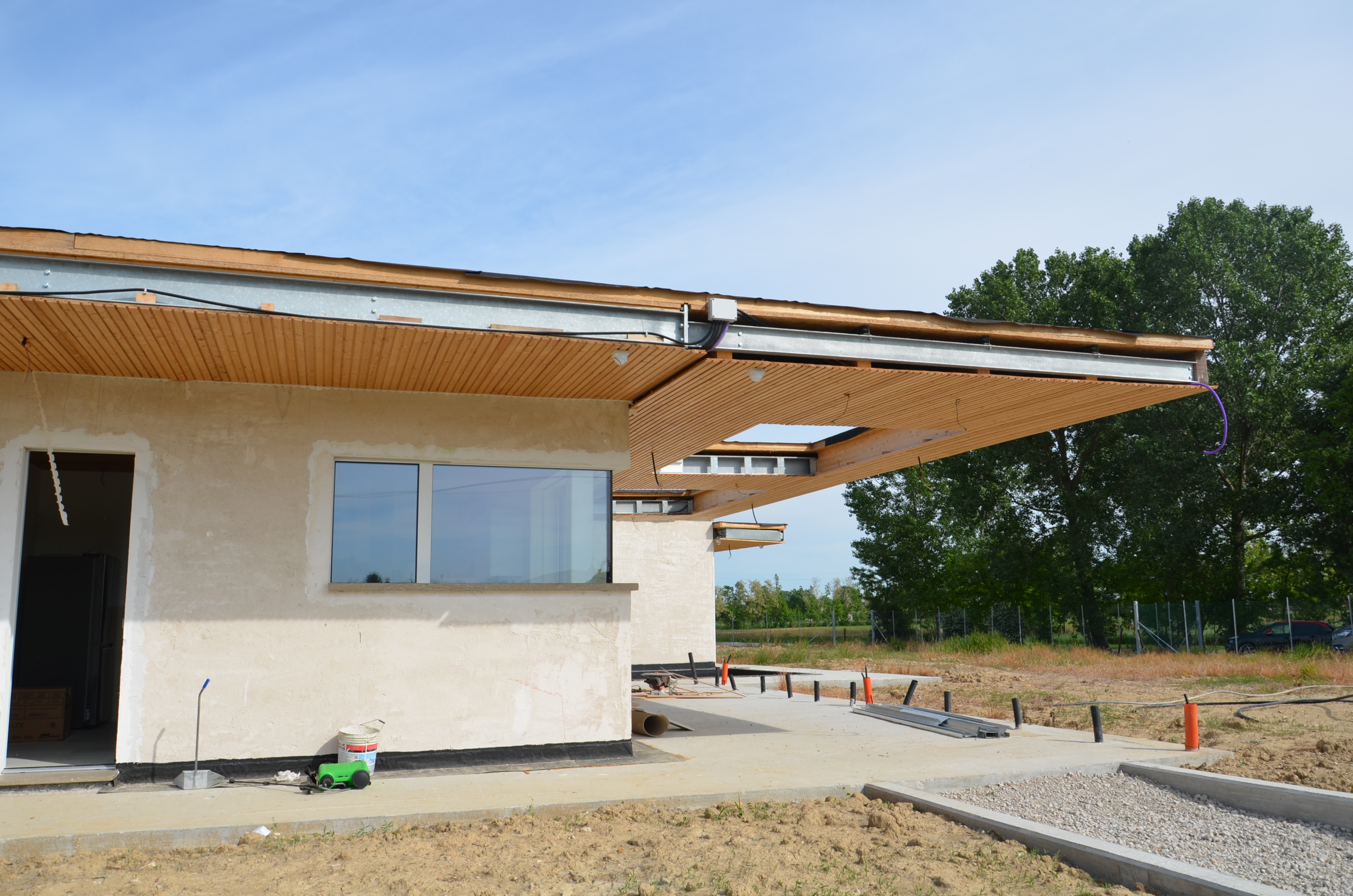 Il progetto di un fabbricato in acciaio con pareti in calce canapa nasce come soluzione alla necessità di creare un organismo, nel quale ogni apparato sia valorizzato dallo sfruttamento delle caratteristiche del materiale che lo compone. Così il tamponamento racchiude, tramite una matrice prefabbricata tridimensionale di fili di acciaio, il materiale isolante in Calcecanapa ® che, a sua volta, avvolge l’ossatura metallica della struttura.