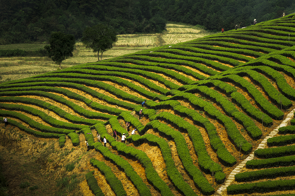 paesaggio che caratterizza la contea di Wuyuan, collocata nella parte nord orientale della provincia del Jiangxi dentro il ‘triangolo d’oro del tè’, ha preso forma nel corso di oltre un millennio di storia ne ha trasformato i rilievi creando un paesaggio dai caratteristici campi ondulati, caratterizzati dal correre ordinato di piantagioni organizzate in bassi filari che, nelle valli ai piedi del monte Dazhangshan, interrompono foreste e risaie e diventano depositari di valori che, andando oltre l’estetica, sono ecologici, culturali, storici, di sostenibilità e di cura responsabile del territorio da tramandare alle generazioni future.