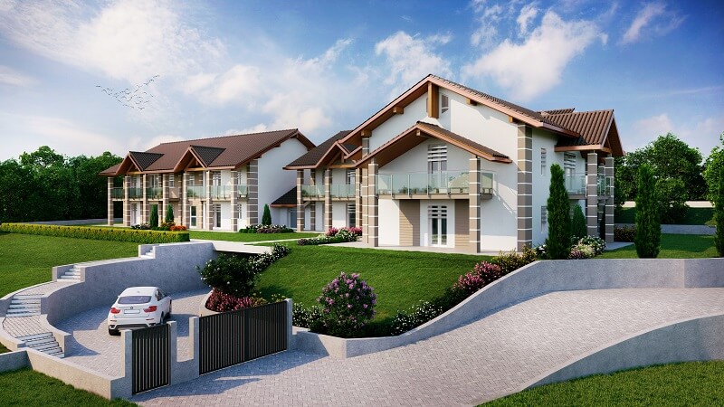 Il complesso residenziale prevede la costruzione di due edifici per un totale di dieci appartamenti di cui cinque unità al piano terra dotate di giardino e cinque al primo piano con terrazzo e balconi, entro la fine di ottobre 2021.