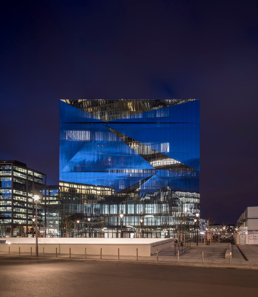 Cube Berlin è un edificio a funzione mista che realizza 19.500 mq all’interno di un edificio cubico di 44 metri di altezza. Ai