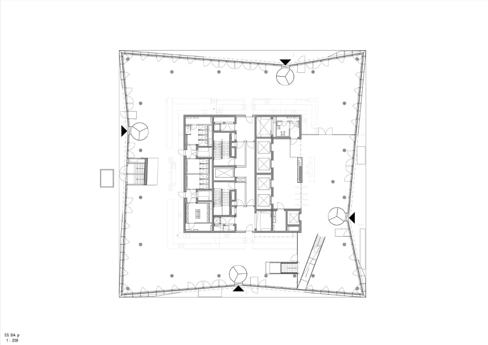 La particolare posizione di Cube Berlin, isolata al centro di un grande spazio pubblico, porta al disegno di un