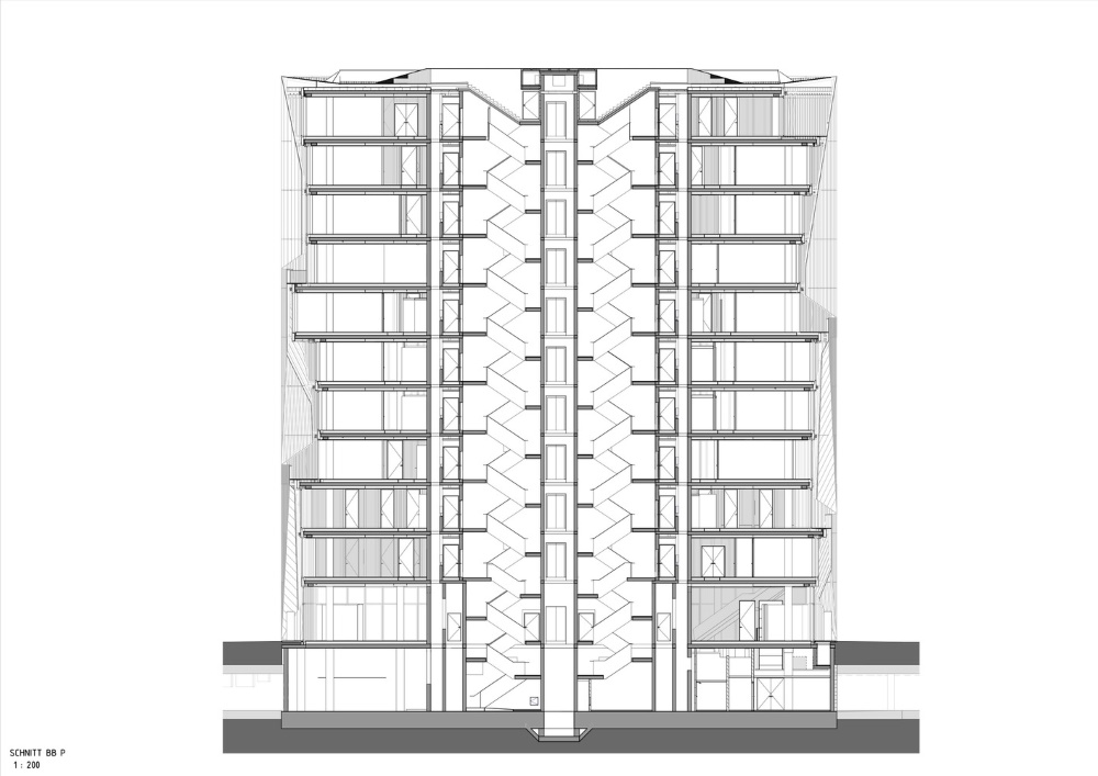 mettere d’accordo diverse esigenze. Da una parte erano poste da un contesto dominato dalla Hauptbanhof, imponente complesso vetrato multilivello progettato dallo studio di Amburgo gmp Architekten. Dall’altra erano richieste da una committenza bisognosa di un edificio relativamente piccolo che avesse una forte personalità e riconoscibilità. La risposta data da 3XN, studio tra i maggiori innovatori in Europa, ha lavorato su un