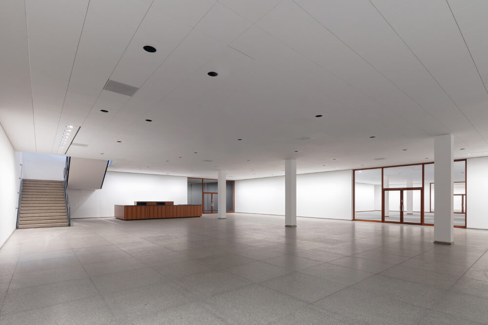 necessità di un intervento di restauro e rifunzionalizzazione della Neue Nationalgalerie. Il progetto doveva essere particolarmente attento ad equilibrare le istanze del restauro dell’architettura contemporanea e le richieste di un uso quotidiano aggiornato e contemporaneo. Il programma affidato a Chipperfield ha compreso quindi l’intervento di recupero dell’architettura, delle sue strutture e dei suoi materiali, e la riorganizzazione di parte dei quoi 13.900 mq con alcuni nuovi spazi.