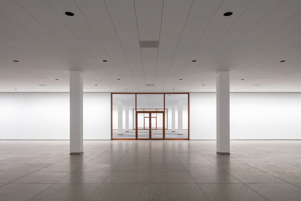 La continuità tra esterno e interno è massima. La trasparenza estrema è funzionale anche a portare la massima quantità di luce possibile all’interno. Il rigore delle forme e la precisa scelta dei materiali rendono razionale e minimale un edificio dalle tipologie geometriche ridotte al minimo. Nella Neue Nationalagelrie la struttura diventa architettura e lo spazio viene completamente liberato.