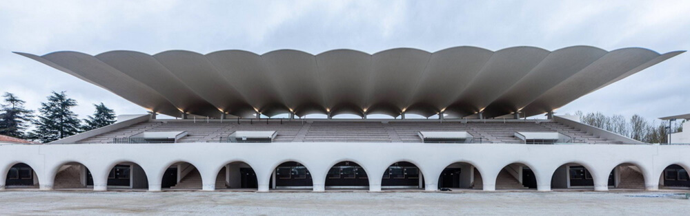 ardite e avanguardistiche strutture a guscio che proteggono le tribune sono ideate e calcolate dall’ingegnere madrileno