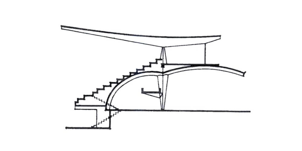 variabili tra i 14 cm dell’appoggio e i soli 5 cm dell’estremità. È costituita dalla successione di settori a guscio a doppia curvatura resistenti per forma.