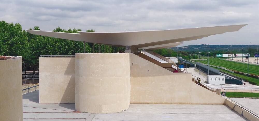 L’Ippodromo della Zarzuela è internazionalmente conosciuto per la struttura in cemento armato delle tribune e la loro copertura a guscio. Questa è formata da un insieme di forme resistenti che definiscono spazi e volumi.
