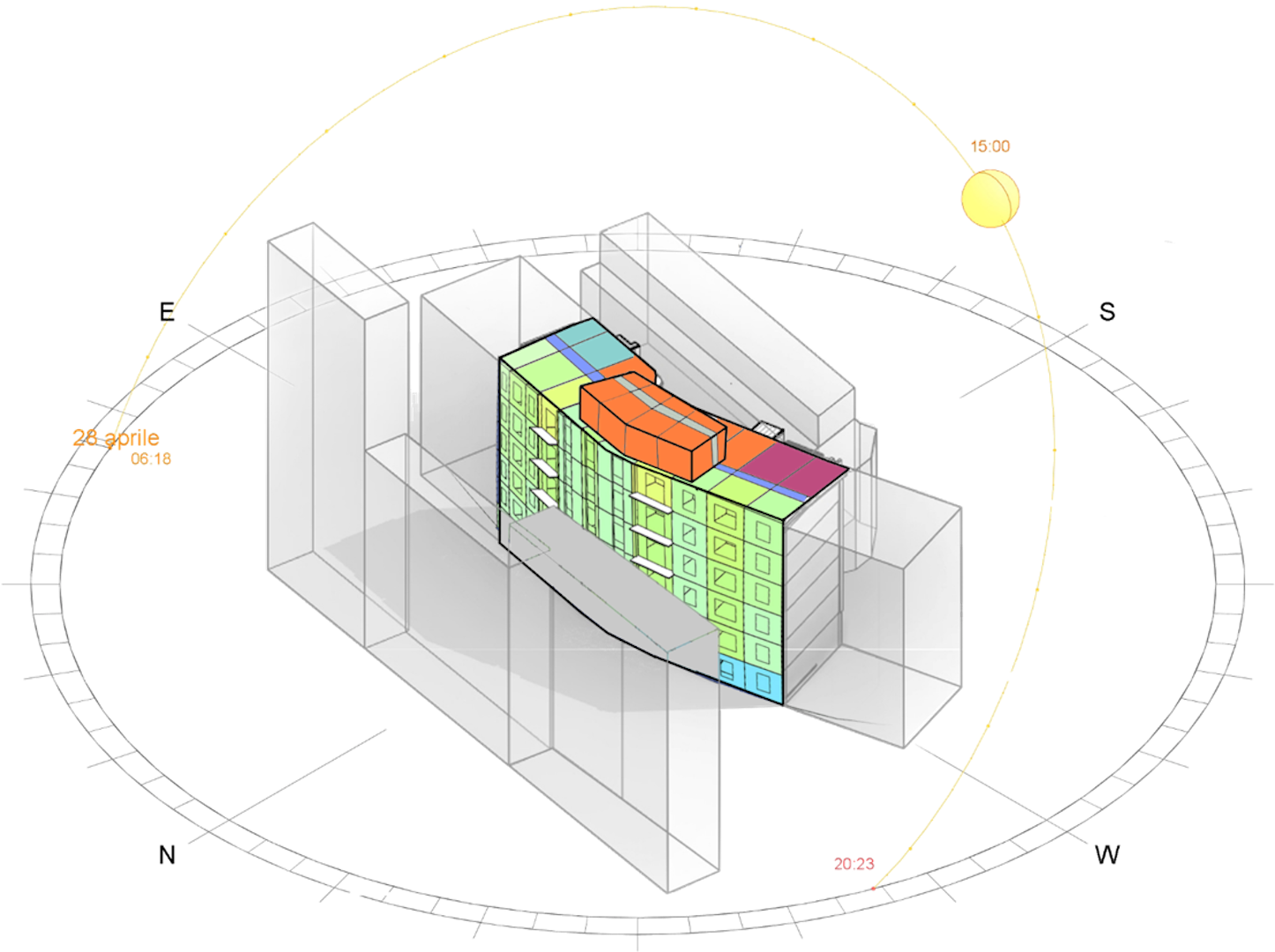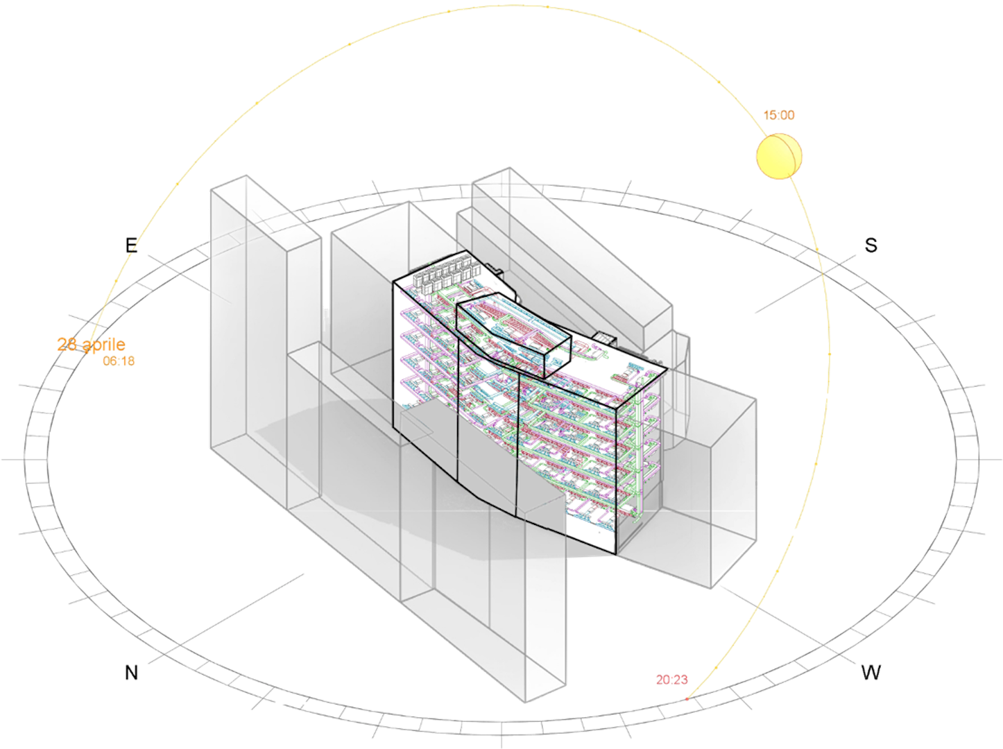 In questo caso il BIM è stata una componente fondamentale nel vincere la sfida principale che poneva l’intervento: l’edificio sottoposto a restyling è curvilineo con geometrie non continue, si piega seguendo l’andamento della strada.
