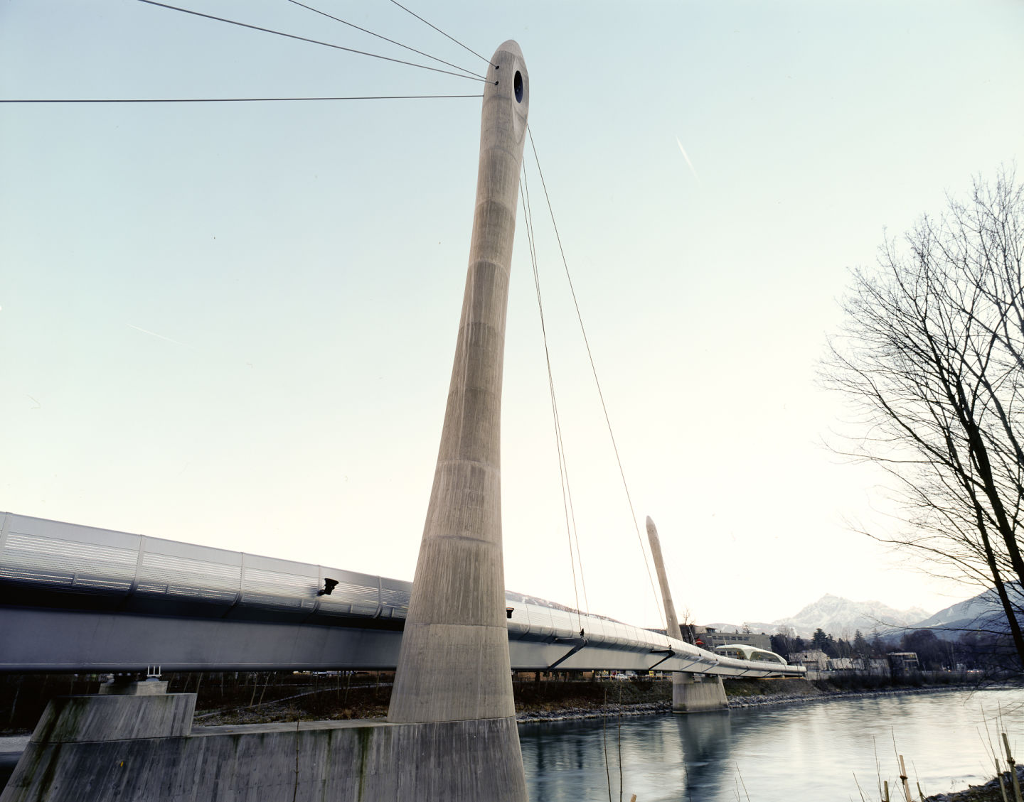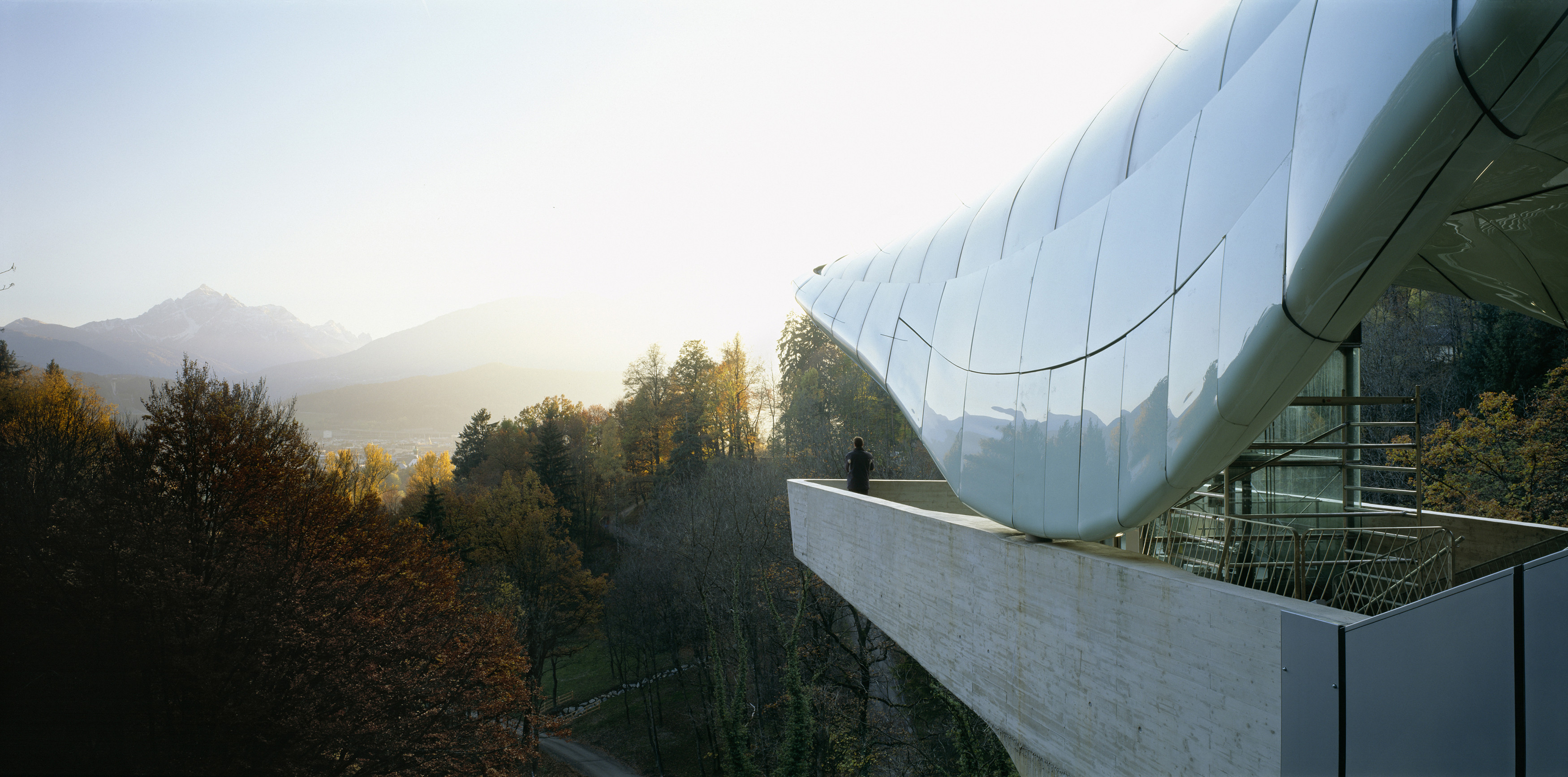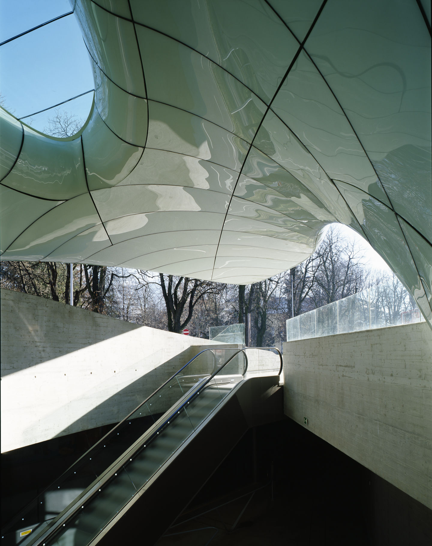 Nel progettare le nuove stazioni a servizio della funicolare di Innsbruck, completate nel 2007, Zaha Hadid ha plasmato strutture avveniristiche caratterizzate dalle cosiddette ‘nuvole di vetro’, coperture curve e riflettenti che si adattano alle condizioni specifiche del sito alle varie altitudini, seguendo un linguaggio architettonico comune ispirato alla formazione naturale dei ghiacciai. Il progetto si compone di quattro stazioni e un ponte sospeso sul fiume Inn, realizzati lungo il tracciato della funicolare che conduce in meno di mezz’ora sulle catene montuose di Innsbruck (1,8 km).