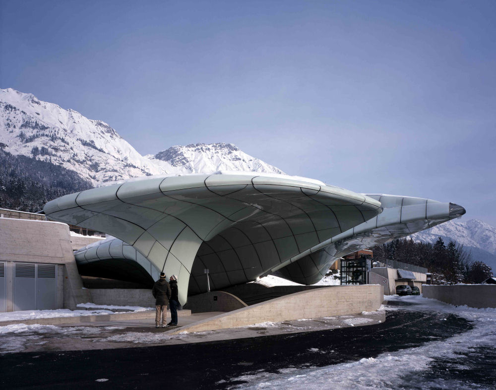 Le quattro stazioni della funicolare di Innsbruck sono un’opera di Zaha Hadid, massima espressione della sua sensibilità plastica e organica nell’impiego di materiali audaci come il vetro a doppia curvatura