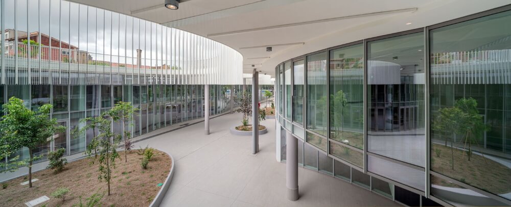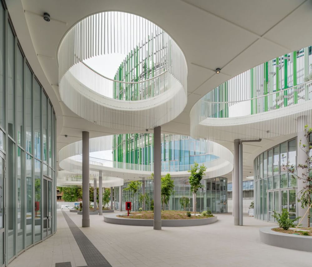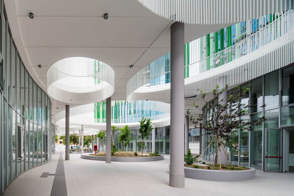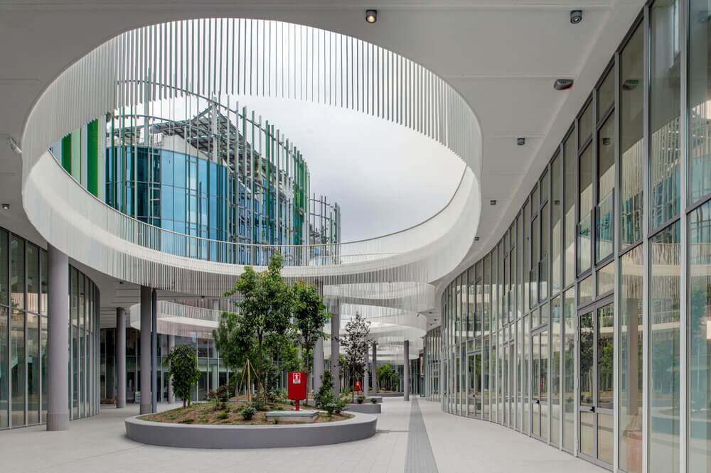 L’architettura disegnata Mario Cucinella Architects vuole riflettere questa volontà. Imposta volumi contemporanei che, ispirati nelle forme e nei materiali ai vicini gasometri, sono chiusi da