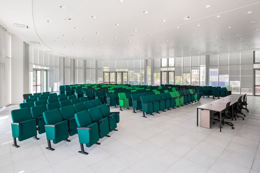 12.000 mq di nuove aule e uffici, tutti posizionati nei livelli fuori terra di ciascuna torre. Quasi altrettanti, 12.800, sono i metri quadri nei due livelli sotterranei, in cui sono posizionati un parcheggio e i locali tecnici.