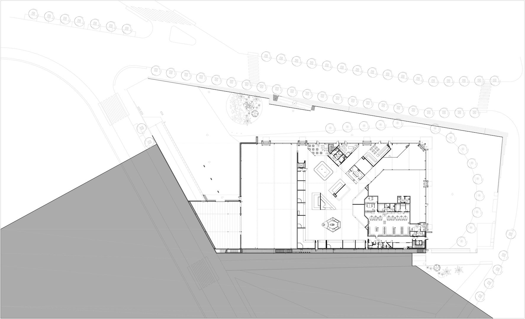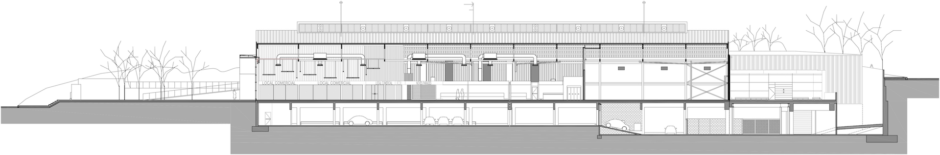 La spazialità interna del mercato, rinnovata e potenziata nella sua organizzazione funzionale, ospita un supermercato, 27 attività commerciali tra nuove ed esistenti e l’ufficio passaporti della Polizia Nazionale. Un piccolo ampliamento volumetrico in un’area adiacente al supermercato ha inoltre permesso il dislocamento di alcune aree logistiche e il conseguente aumento della superficie di vendita alimentare. Accanto ad una rigida distribuzione diagonale di alcuni stand (non oggetto di rinnovamento) sono state poi distribuite nuove aree commerciali e creato un sistema multiplo di accessi.