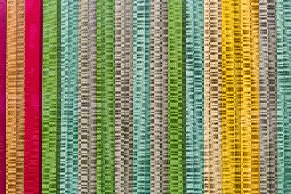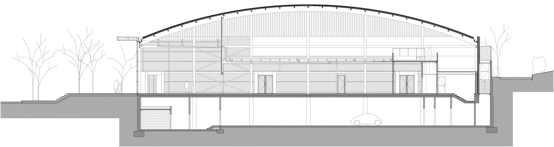 Nuove superfici vetrate avvolgono infatti l’edificio nella sua configurazione ad angolo e vanno a sostituire il sistema introverso di pannelli prefabbricati in calcestruzzo che componeva in origine il volume del mercato. La realizzazione della nuova facciata continua vetrata (Technal Geode) nasce quindi con l’idea di stabilire una maggiore trasparenza e una completa comunicazione visiva tra le attività interne del mercato e la piazza antistante. Ove le partizioni esterne rimangono invece opache, un nuovo rivestimento vivace e colorato caratterizza i prospetti grazie all’applicazione di lamiere forate in acciaio zincato, verniciate in diverse tonalità (dal rosso all’arancio, dal verde all’azzurro, dal giallo al beige e al grigio) disposte a creare una sequenza verticale e un ritmo cromatico variabile che richiama quello delle montagne circostanti. A completare la nuova veste esterna dell’edificio è infine una tettoia a sbalzo (rivestita con pannelli in alluminio nero) che incornicia le superfici vetrate e disegna un profilo che sale fino alla sommità in corrispondenza dell’angolo, per segnalare quel punto come accesso principale all’edificio.