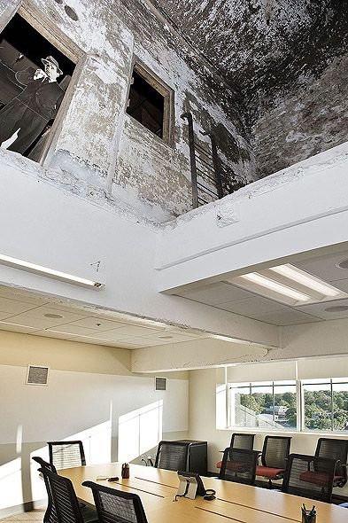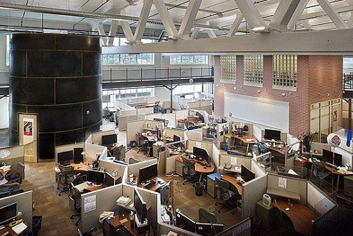 Osservando la sede di Pittsburgh risulta evidente il rapporto istituito tra i nuovi uffici e la sede storica del fabbricato in cui sorgono, un edificio centenario della produzione Nabisco. Lo studio di architettura Strada, che ha curato il progetto, ha scelto di mantenere lo stile industriale con tubi a vista e pareti grezze, completando lo spazio con passerelle sospese, un giardino coperto con piante di bambù, un’amaca formata da una rete di carico che oscilla e una sala conferenze all’interno di una struttura cilindrica preesistente.