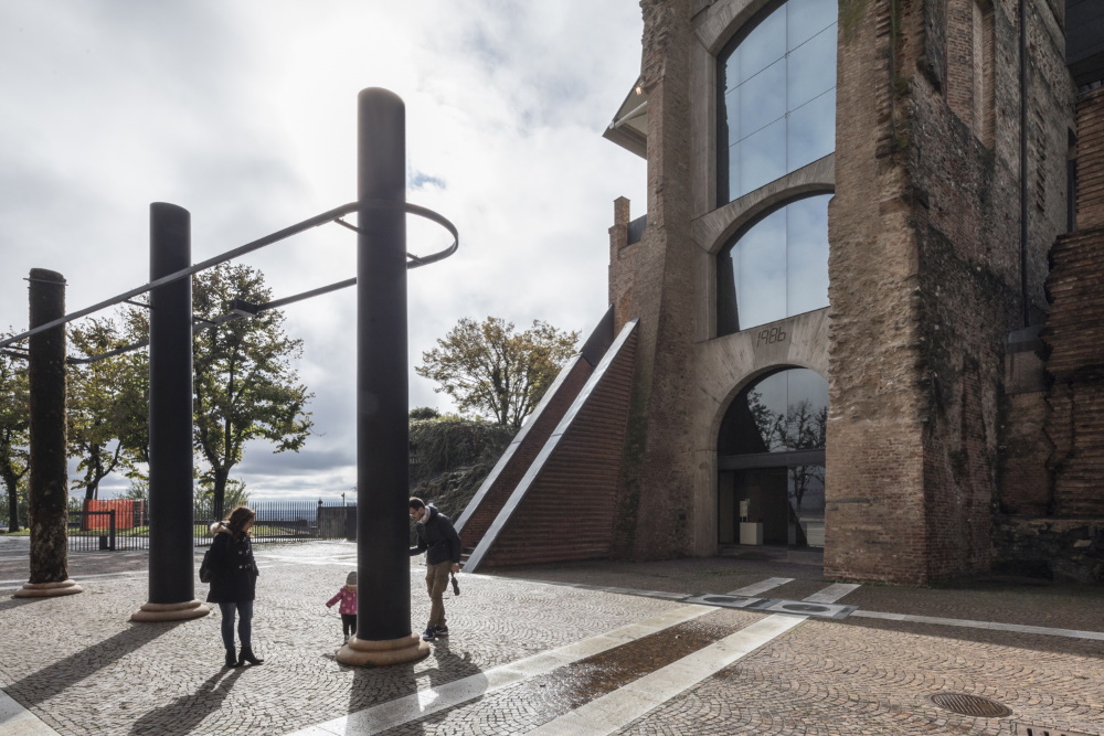 ‘congelato’ gli edifici e le loro strutture, il non finito e anche i danni occorsi nel tempo. È riuscito a valorizzare tutte le stratificazioni rendendole parte integrante della rifunzionalizzazione. Ha aggiunto dove più opportunonuove parti e strutture, contemporanee, reversibili e completamente riconoscibili dall’esistente. Bruno ha integrato nel complesso la ricostruzione di due specifiche parti, portando avanti un restauro rispettoso dell’edificio dove richiesto. È riuscito a evitare falsificazioni e completamenti ‘in stile’.
