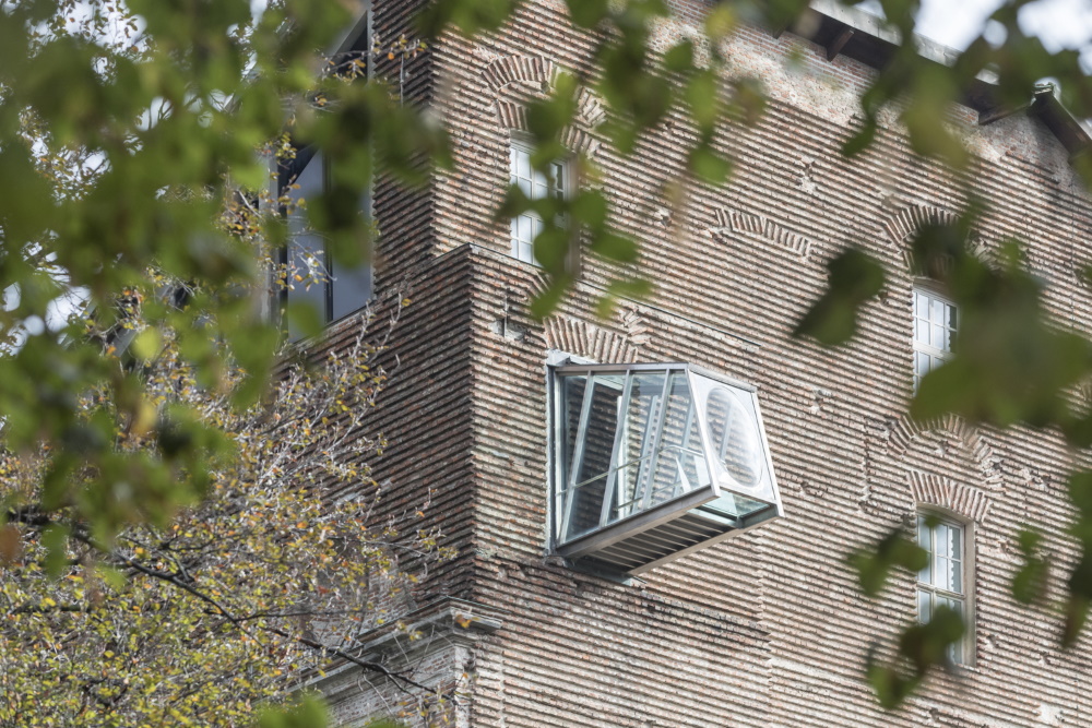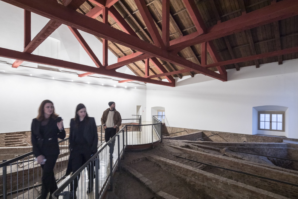 sala al terzo piano accoglie i visitatori con i suoi 147 metri di lunghezza completamente aperti, le opere d’arte di volta in volta esposte e la contemporaneità della sua architettura, aperta sulla collina e su un’importante vista panoramica. La