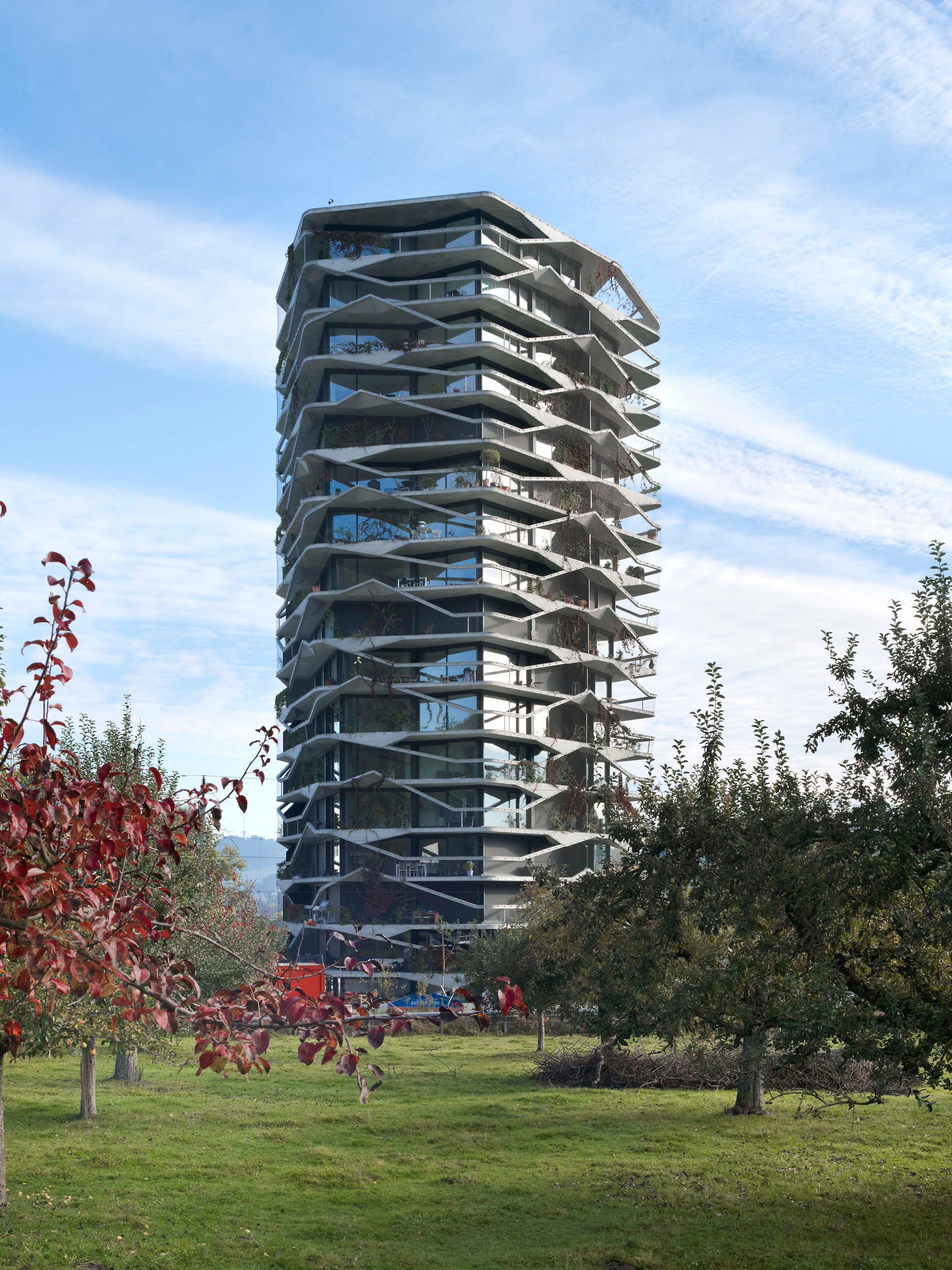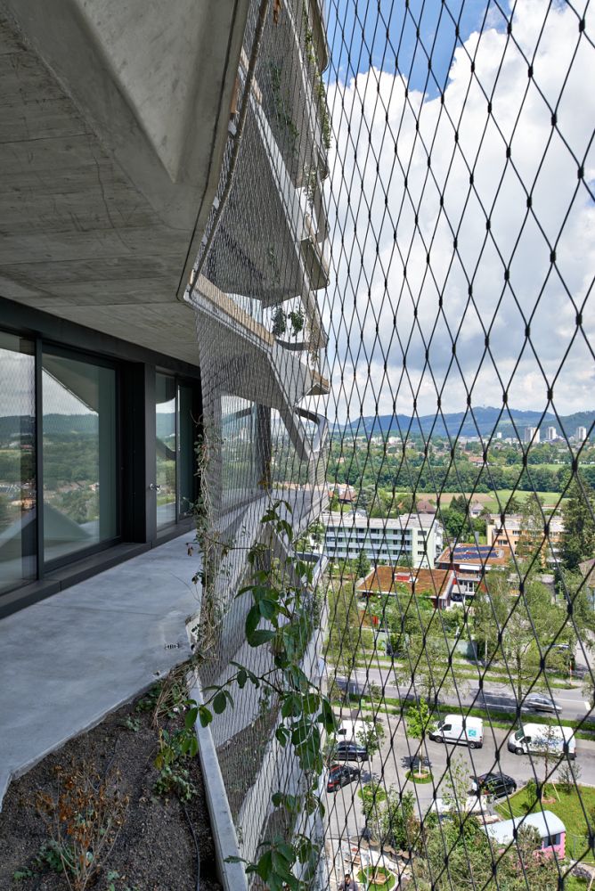 Realizzata dallo studio Buchner Bründler di Basilea, si eleva per 16 piani e offre alla crescita del verde in facciata superfici continue costituite di quasi invisibili reti di acciaio inossidabile