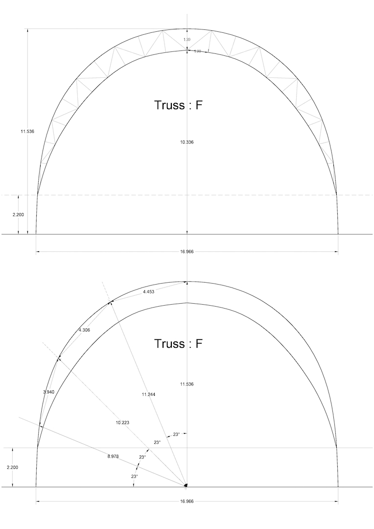 Concepita come un’architettura aperta senza pareti perimetrali, l’arena gode di un clima fresco e piacevole durante tutto l’anno poiché è garantita una ventilazione naturale senza bisogno di aria condizionata artificiale. Dal punto di vista strutturale gli architetti Markus Roseliebe e Tosapon Sittiwong hanno collaborato con gli ingegneri Phuong Nguyen e Esteban Morales Montoya per la realizzazione di un sistema strutturale prefabbricato interamente in bambù, in grado di resistere ai forti venti e ai frequenti terremoti che colpiscono questa zona. L’innovativo design si basa infatti su tralicci e archi prefabbricati che coprono una luce di 17 metri, precostruiti in loco e sollevati con una gru; non vi sono connessioni o rinforzi in acciaio ma solo corde che provvedono all’unione e al sostegno dei vari elementi, così come non è stato utilizzato nessun conservante chimico nel trattamento del bambù, effettuato esclusivamente con prodotti naturali come il borato di sodio.