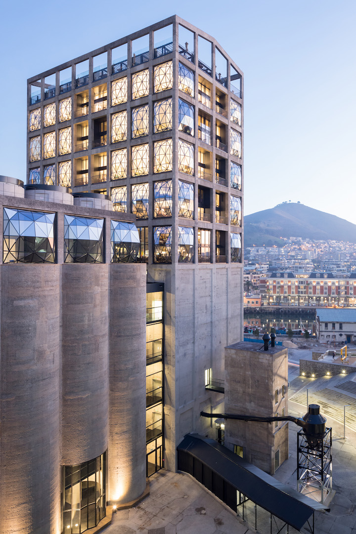 Un investimento di circa 31 milioni di euro, condotto da Jochen Zeitz, ex-amministratore delegato di Puma e collezionista d’arte contemporanea africana, in partnership con il Victoria and Albert Waterfront, cuore portuale di Città del Capo che attrae migliaia di visitatori al giorno. Proprio qui si colloca il Grain Silo Complex con la sua duplice struttura industriale che rinasce, a distanza di 93 anni, con il museo Zeitz Mocaa ma anche con un hotel di lusso. All’interno degli antichi silo di stoccaggio è stato infatti scolpito il museo, mentre negli ultimi sei piani di quella che una volta era la torre di movimentazione meccanica del grano sorge The Silo Hotel gestito dal gruppo Royal Portfolio, un hotel cinque stelle immerso nel paesaggio naturale sudafricano e progettato dall’interior designer Liz Biden.