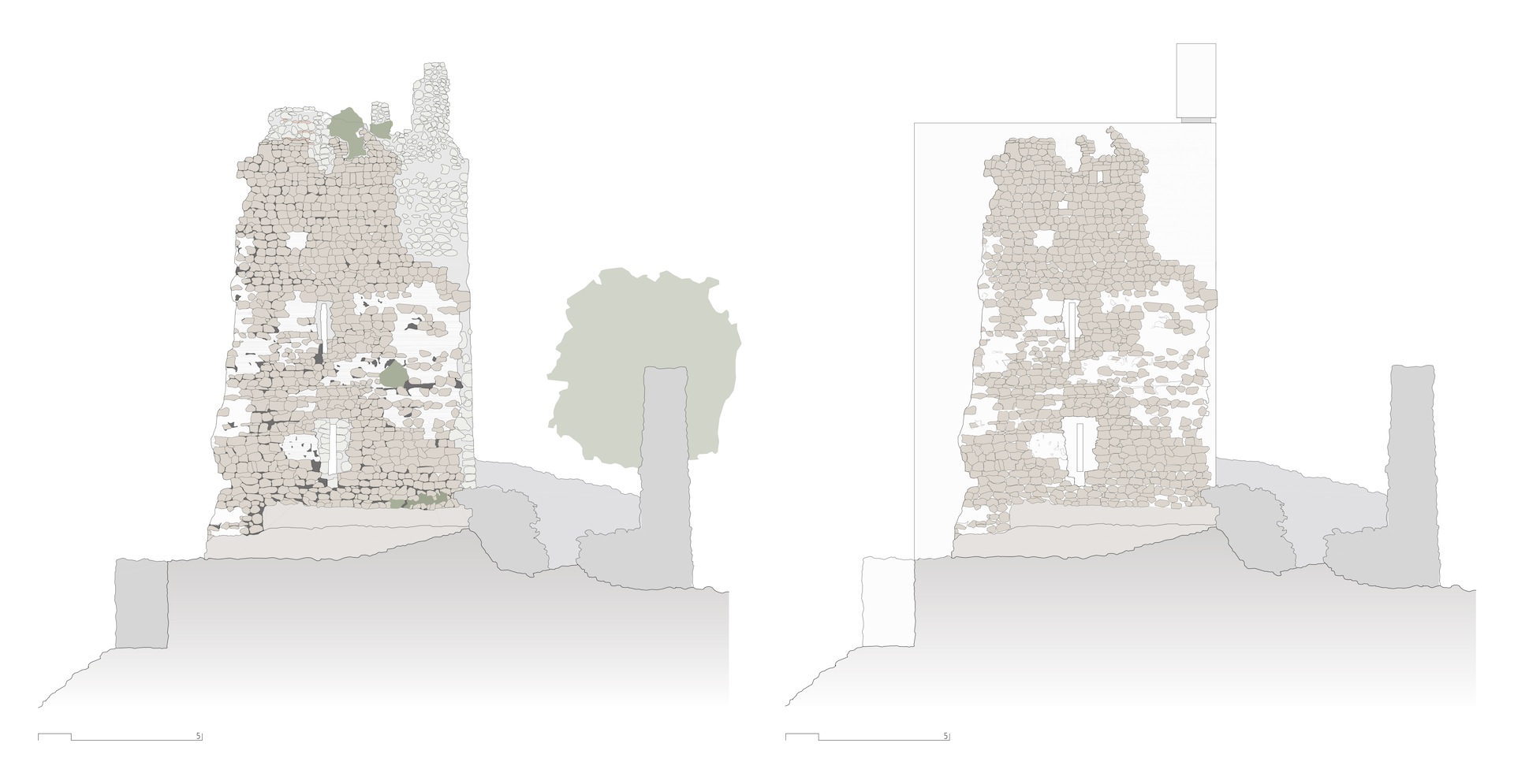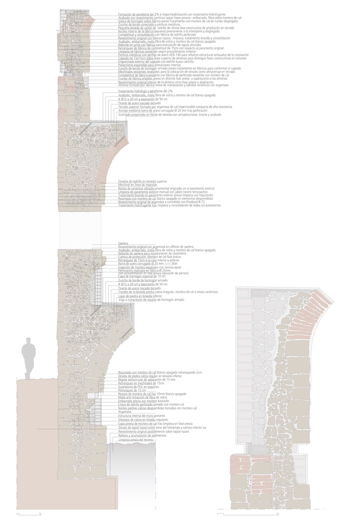 La struttura della torre prima e dopo il restauro © Mariano Copete Franco – Francisco Chacón Martínez
