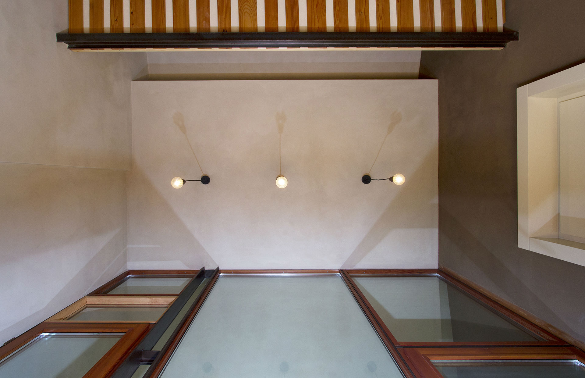 Al momento dell’intervento la stanza si presentava come una somma di realizzazioni cronologicamente successive: in origine era stata concepita come terrazza all’aperto, incassata tra due edifici, uno residenziale costruito in mattoni pieni e un capannone realizzato in blocchi di cemento. Poi è stata coperta da una tettoia in amianto, successivamente sostituita da un tetto in latero-cemento, chiusa sui due lati rimasti aperti, dotata di una scala esterna che collegasse il piano terra con il primo e, infine, anche la scala è stata inglobata nel volume coperto. Tanti passaggi, differenti tecniche costruttive, una stratificazione non omogenea che era chiaramente leggibile.
