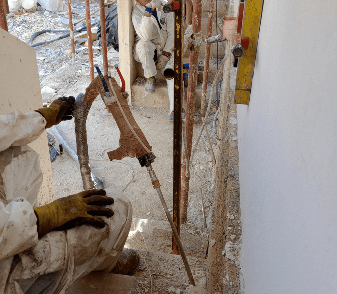In questo caso studio parliamo di un condominio recuperato tramite Superbonus nel 2023. Oltre agli interventi di efficientamento energetico, in questo caso sono stati necessari interventi strutturali a causa di problemi di dissesto su alcune zone della struttura. Vista la presenza di cedimenti localizzati i tecnici hanno optato per un intervento che non comportasse irrigidimenti parziali e consentisse di eseguire il consolidamento fondazioni in zone mirate, solo ove necessario. In questo senso i consolidamenti con iniezione di resine espandenti offrono ovviamente garanzie rispetto ad altri tipi di interventi strutturali. Infatti, con la metodologia delle iniezioni l’obiettivo è quello di compattare e migliorare il terreno solo dove c’è stato il cedimento e riportarlo a valori di resistenza e stabilità simili a quelli delle zone stabili della struttura.Photogallery