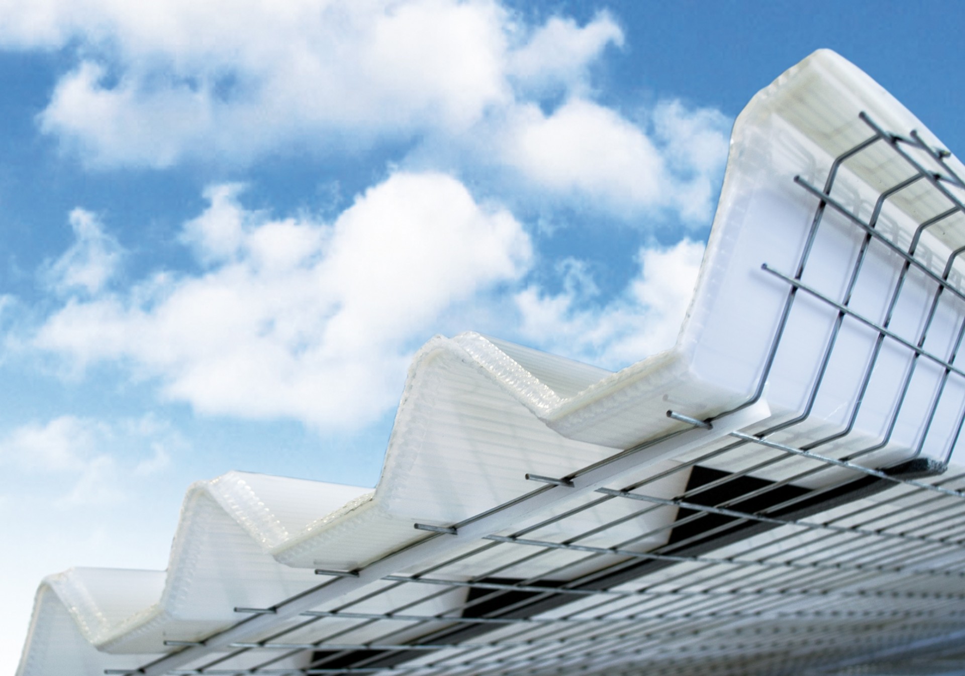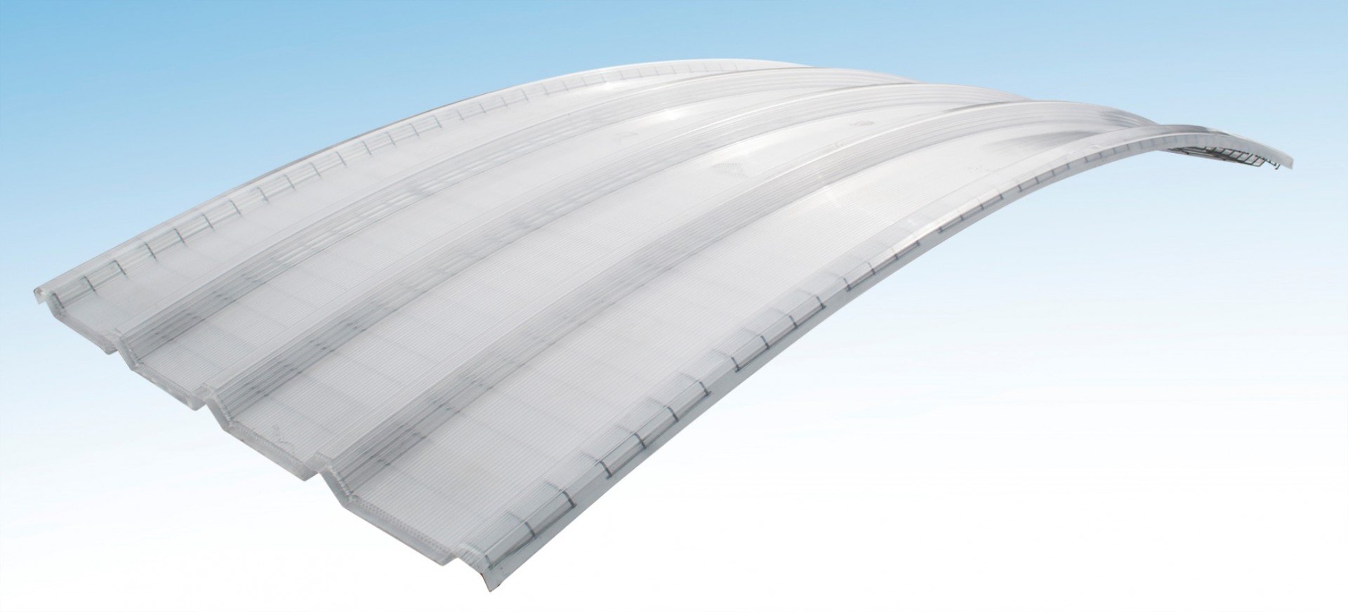 PolyPIÙ presenta TecnoPIÙ, sistemi di lastre grecate in policarbonato alveolare, protette u.v., preassemblate con rete metallica anticaduta e abbinabili a lamiere o pannelli