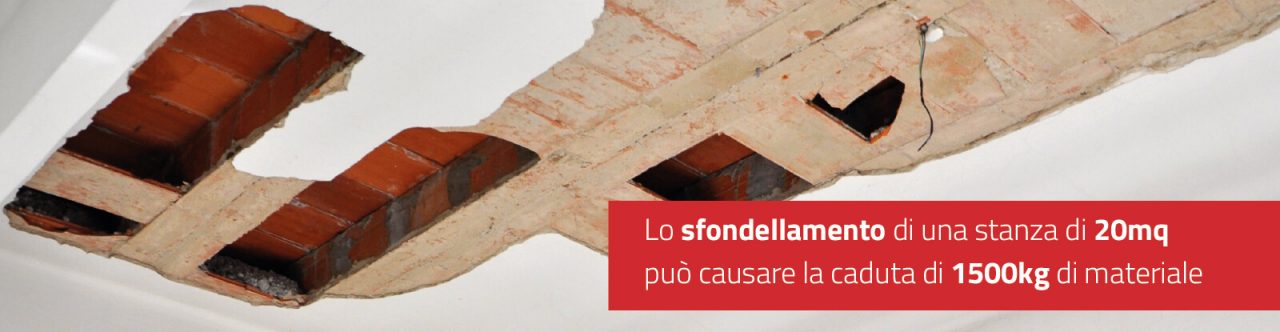 Consapevoli dei rischi che comporta lo sfondellamento, sia per gli ambienti, ma soprattutto per le persone, abbiamo ritenuto indispensabile rendere possibile ed agevole la messa in sicurezza.