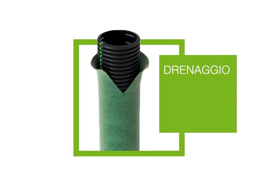 Il drenaggio viene realizzato mediante un tubo corrugato drenante a doppia parete flessibile, rivestito con calza filtrante in geotessile di circa 170 g/m2 di massa areica (versione TNT prevista da Italdreni).