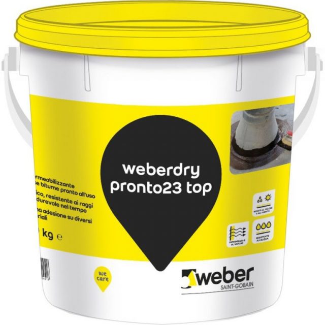 Anche WEBER con il prodotto WEBERDRY PRONTO23 TOP consente l’impermeabilizzazione di superfici esistenti.
