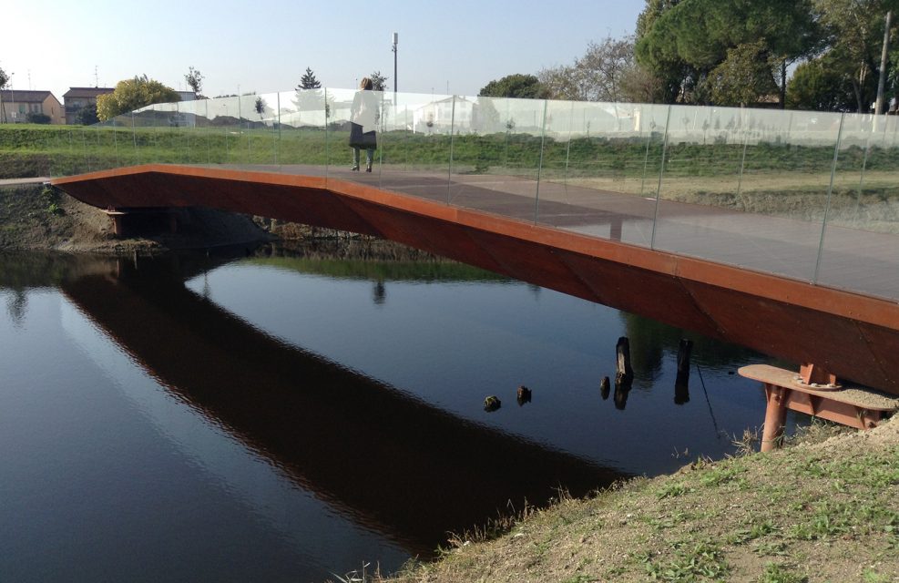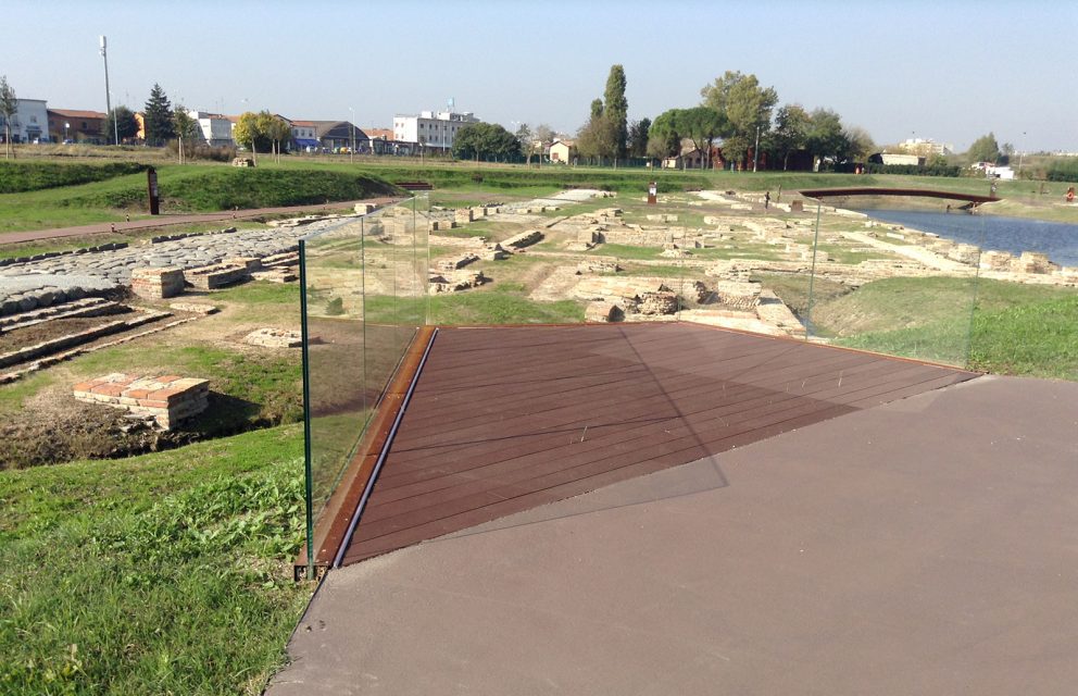 Foto 6 – Soluzione per l’accessibilità di un’area archeologica (qui, il porto di Classe vicino a Ravenna): una piazzola panoramica da cui godere della visione generale dell’intero sito