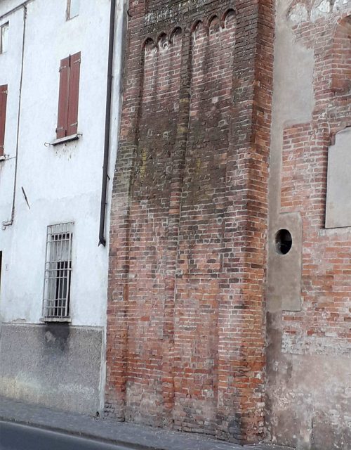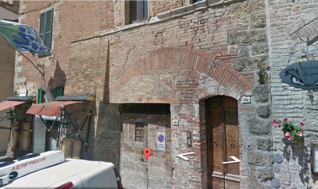 Il secondo caso riguarda invece una casa a schiera matura (detta anche “lotto gotico” – Fig. 17), probabilmente databile alla fine del XIV o alla prima metà del XV secolo, successivamente soprelevata e rimaneggiata più volte. Inoltre, conformemente al proprio tipo edilizio, l’edificio presenta due grandi finestre (successivamente rimpiccolite) del primo piano molto vicine agli spigoli della facciata, i due ingressi del piano terra (originariamente corrispondenti alla casa e alla bottega) e un grande arcone a sesto ribassato al piano terra, forse corrispondente alla “vetrina” dell’originaria bottega medievale.