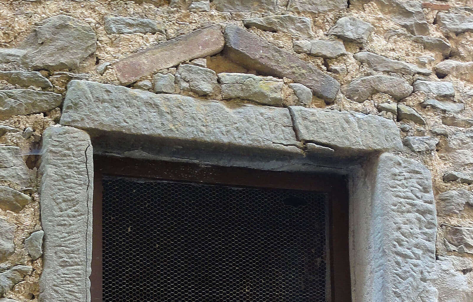 • un arco di scarico naturale sopra la finestra sinistra del primo piano;