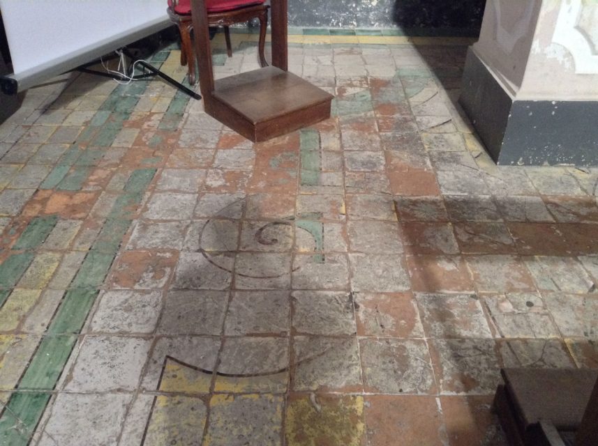 Foto 11 – Erosione di un pavimento settecento in maiolica policroma dovuta a calpestio (degrado da usura)