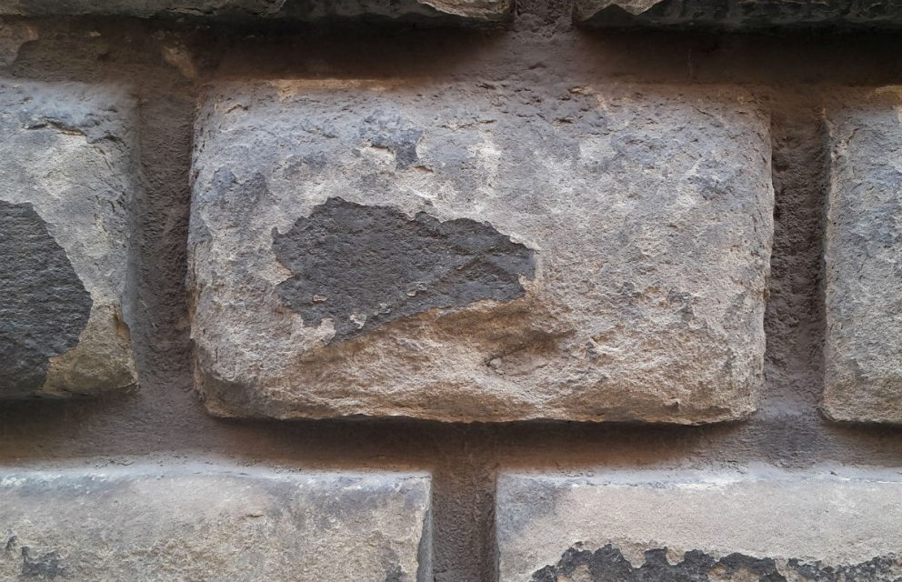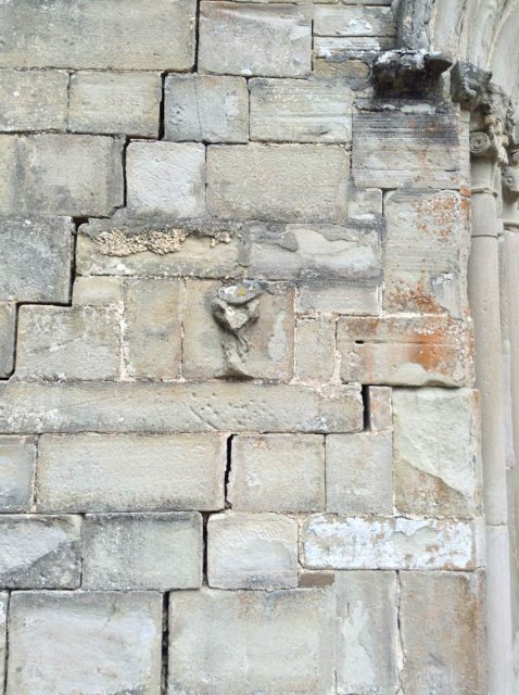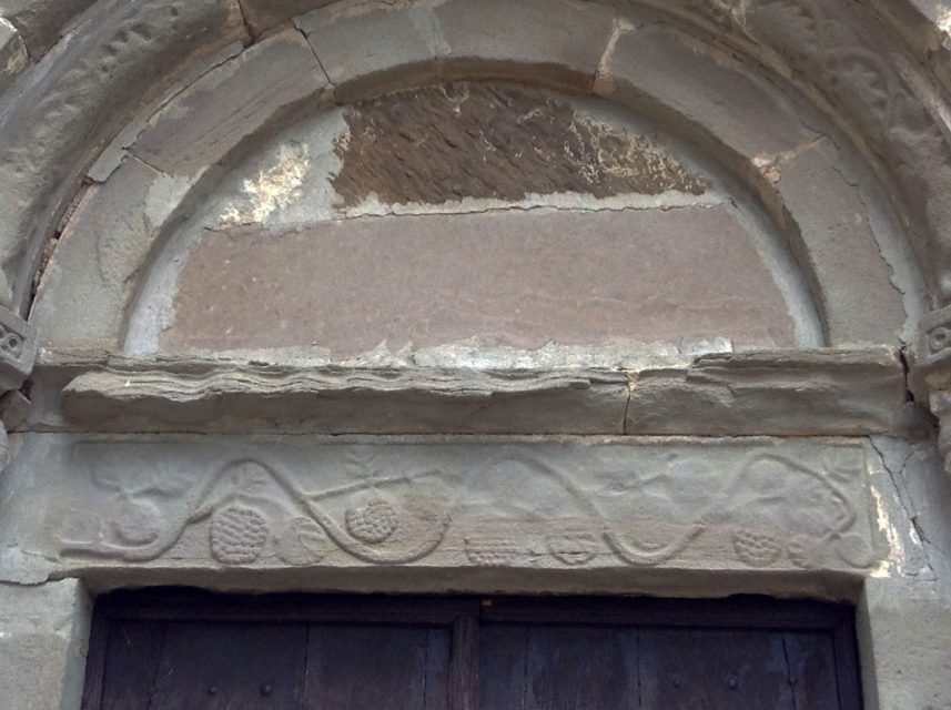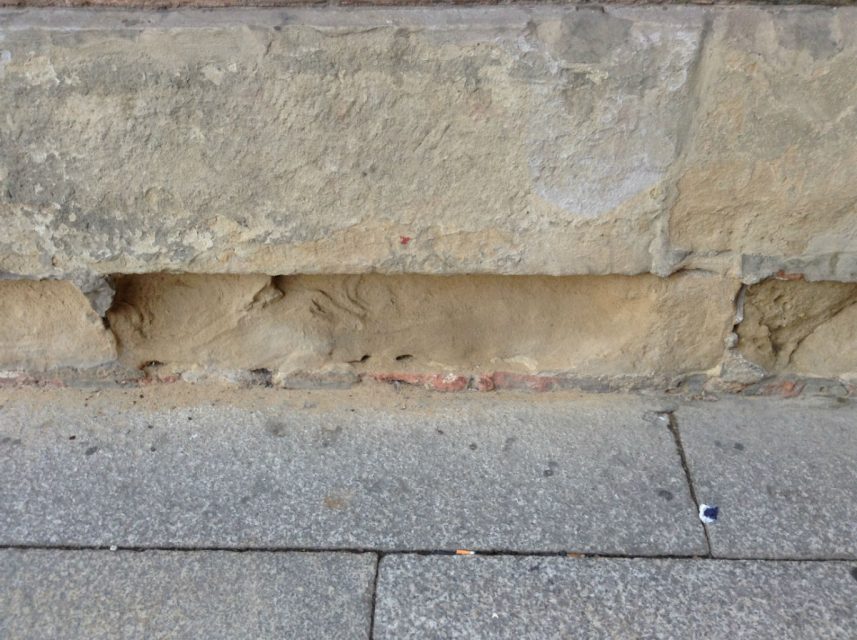 Foto 13 – Erosione di un fregio romanico in pietra serena (arenaria grigia) causata dal vento