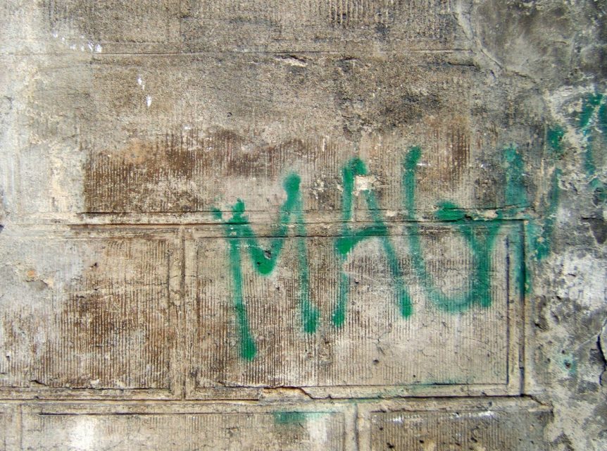 Graffito vandalico (Torna su) – Scritte o disegni moderni praticati con punte accuminate o più spesso vernici, tali da deturpare il manufatto.