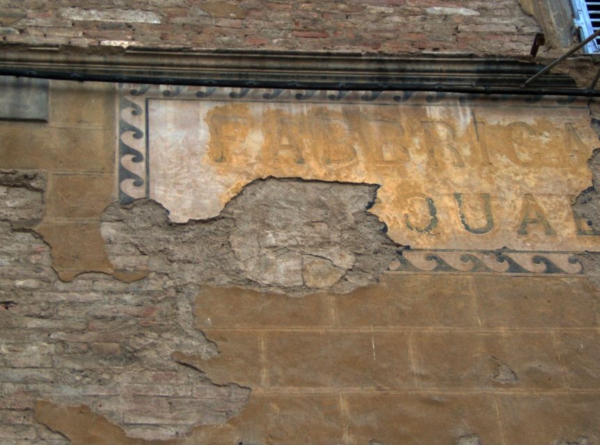 Colatura (Torna su) – Serie di tracce verticali e parallele, tipicamente dovuta alla percolazione di acqua piovana in seguito all’inefficienza o alla mancanza di grondaie e pluviali.